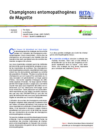 Dupin Tim, Maigné Louis, Costet Laurent. 2022. Champignons entomopathogènes de Mayotte. Mamoudzou : RITA, 4 p.