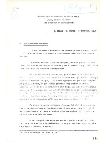 Billaz René, Gentil Dominique, Dufumier Marc. 1977. Méthodologie de l'analyse du milieu rural avant, pendant et après : une opération de développement. Paris : GERDAT, 83 p.