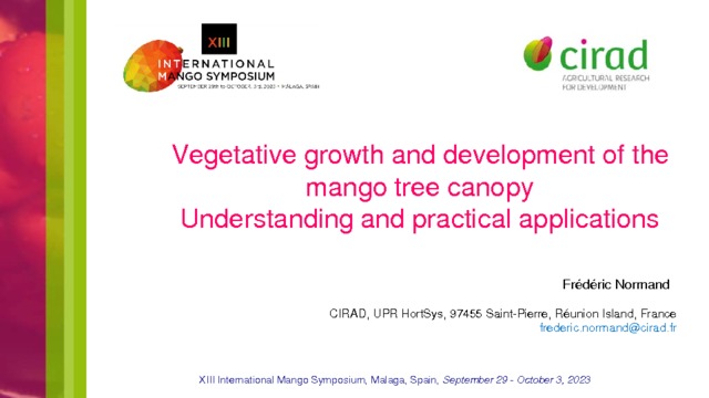 In : Proceedings of the XIII International Mango Symposium. Hormaza J.I. (ed.), Galán Saúco V. (ed.), Fernández-Pozo N. (ed.). ISHS, IHSM