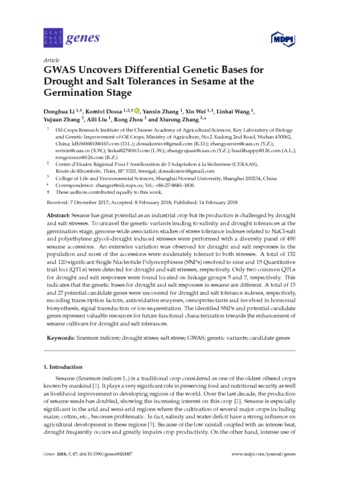 Mots-clés libres : Sesamum indicum, Drought stress, Salt stress, GWAS, Genetic variants, Candidate genes