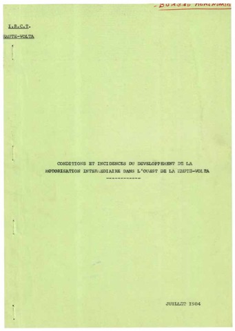Berger Michel, Nauleau M.. 1984. Conditions et incidences du développement de la motorisation intermédiaire dans l'ouest de la Haute-Volta. Montpellier : GERDAT, 33 p.