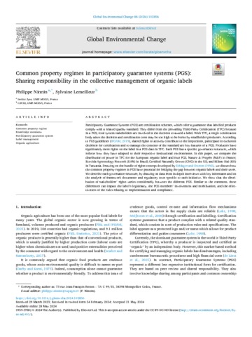 Ninnin Philippe, Lemeilleur Sylvaine. 2024. Common property regimes in participatory guarantee systems (PGS): Sharing responsibility in the collective management of organic labels. Global Environmental Change, 86:102856, 10 p.