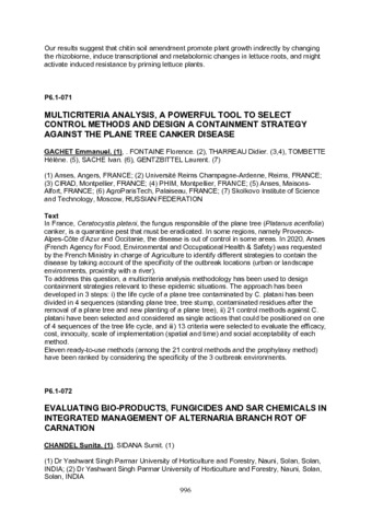 2023. Multicriteria analysis, a powerful tool to select control methods and design a containment strategy against the plane tree canker disease.