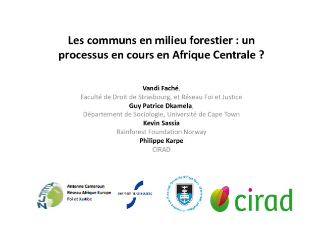2016. Les communs en milieu forestier : un processus en cours en Afrique Centrale ?.