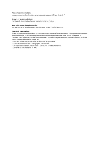 Utilisation soumise à autorisation de l'auteur ou du Cirad. Les communs en milieu forestier. Fiche résumé.pdf Télécharger (412kB) | Prévisualisation |