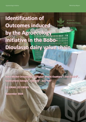 Orounladji Boko Michel, Ouattara Songdah Desire, Dabire Der, Sanogo Souleymane, Sib Ollo, Vall Eric. 2024. Identification of Outcomes induced by the Agroecology Initiative in the Bobo-Dioulasso dairy value chain. Montpellier : CIRAD-CIRDES, 36 p.