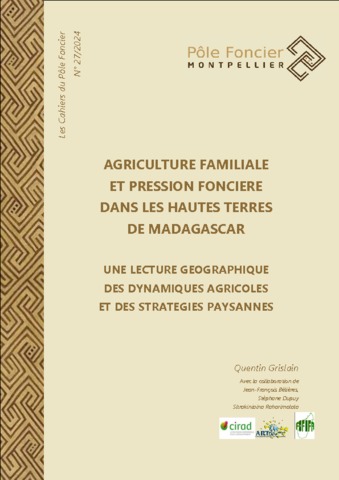 Grislain Quentin, Bélières Jean-François, Dupuy Stéphane, Raharimalala Sitrakiniaina. 2024. Agriculture familiale et pression foncière dans les Hautes Terres de Madagascar : une lecture géographique des dynamiques agricoles et des stratégies paysannes. Montpellier : Pôle Foncier Montpellier, 62 p. (Les Cahiers du Pôle Foncier, 27/2024) ISBN 979-10-92582-7-6