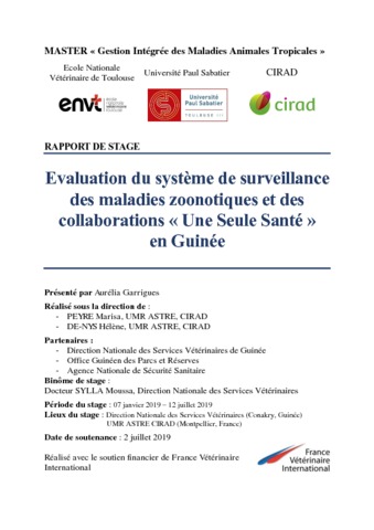 Garrigues Aurélia. 2019. Evaluation du système de surveillance des maladies zoonotiques et des collaborations "Une Seule Santé" en Guinée. Toulouse : ENVT, 44 p. Mémoire de master 2 : Gestion intégrée des maladies animales et tropicales (GIMAT) : Ecole Nationale Vétérinaire de Toulouse