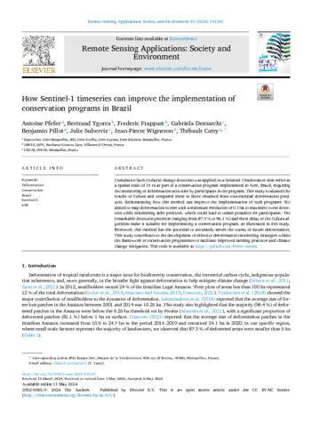Pfefer Antoine, Ygorra Bertrand, Frappart Frédéric, Demarchi Gabriela, Pillot Benjamin, Subervie Julie, Wigneron Jean-Pierre, Catry Thibault. 2024. How Sentinel-1 timeseries can improve the implementation of conservation programs in Brazil. Remote Sensing Applications: Society and Environment, 35:101241, 12 p.