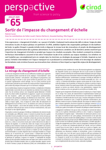 Caron Patrick, Louafi Selim, DeClerck Fabrice, Harding Amanda, Daguet Ellie. 2025. Sortir de l'impasse du changement d'échelle. Perspective (65) : 1-4.