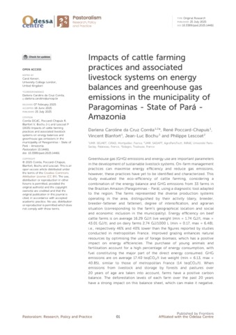 Da Cruz Correa Darlena Caroline, Poccard-Chapuis René, Blanfort Vincent, Bochu Jean-Luc, Lescoat Philippe. 2025. Impacts of cattle farming practices and associated livestock systems on energy balances and greenhouse gas emissions in the municipality of Paragominas - State of Pará - Amazonia. Pastoralism - Research, Policy and Practice, 25:14461, 24 p.