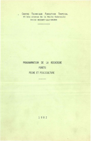 GERDAT-CTFT - FRA. 1982. Programmation de la recherche forêts pêche et pisciculture. Nogent-sur-Marne : GERDAT-CTFT, 222 p.