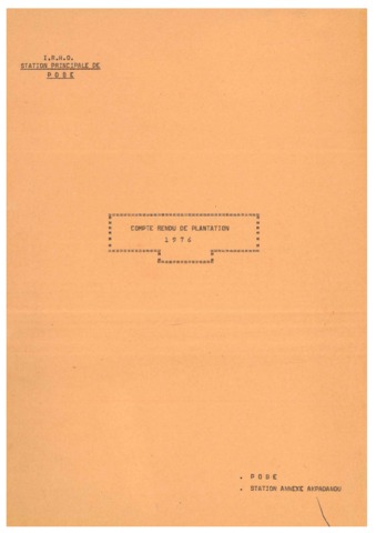 GERDAT-IRHO - FRA. 1976. Compte rendu de plantation 1976. Pobé : GERDAT-IRHO, 23 p.