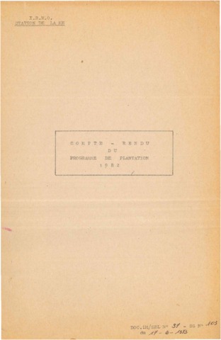 GERDAT-IRHO - FRA. 1983. Compte rendu du programme de plantation 1982. Mé : GERDAT-IRHO, 42 p. N° de rapport : GERDAT-IRHO DOC LM/SEL N°37 - SEL N°103