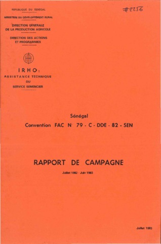 GERDAT-IRHO - FRA. 1983. Rapport de campagne Juillet 1982 - Juin 1983. Paris : GERDAT-IRHO, 120 p.