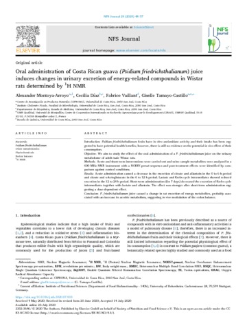 Montoya-Arroyo Alexander, Díaz Cecilia, Vaillant Fabrice, Tamayo-Castillo Giselle. 2020. Oral administration of Costa Rican guava (Psidium friedrichsthalianum) juice induces changes in urinary excretion of energy-related compounds in Wistar rats determined by 1H NMR. NFS Journal, 20 : 48-57.