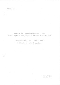Recherches sur la multiplication végétative des Pins tropicaux et des Eucalyptus. Schirlé A., Hueber R.. 1980. Nogent-sur-Marne : GERDAT-CTFT, 23 p.