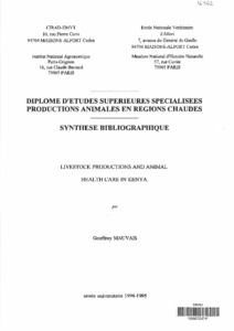 Livestock productions and animal health care in Kenya. Mauvais Geoffroy. 1995. Maisons-Alfort : CIRAD-EMVT, 35 p. Mémoire DESS (Synthèse bibliographique) : Productions Animales en Régions Chaudes : Ecole nationale vétérinaire d'Alfort