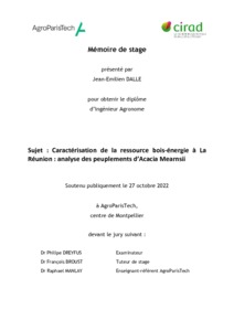 Caractérisation de la ressource bois-énergie à La Réunion : analyse des peuplements d'Acacia Mearnsii. Dalle Jean-Emilien. 2022. Montpellier : AgroParisTech, 72 p. Mémoire d'ingénieur : Agronome : AgroParisTech