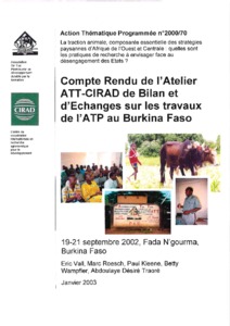 Compte rendu de l'Atelier ATT-CIRAD de bilan et d'échanges sur les travaux de l'ATP au Burkina Faso, 19-21 septembre 2002, Fada N'Gourma, Burkina Faso. Vall Eric, Roesch Marc, Kleene Paul, Wampfler Betty, Traoré Abdoulaye Désiré. 2003. s.l. : CIRAD, 106 p.