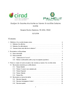 Analyse de données structurées au travers de modèles linéaires mixtes. Heuclin Benjamin, Le Squin Sandrine (collab.), Denis Marie (collab.), Flori Albert (collab.). 2024. Montpellier : CIRAD, 3 vol. (18, 51, 21 p.)