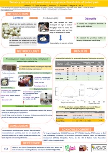 Sensory texture and sweetness acceptance thresholds of boiled yam. Adinsi Laurent, Djibril Moussa Imayath, Honfozo Laurenda, Bouniol Alexandre, Meghar Karima. 2024. . Montpellier : CIRAD, 1 p. Regional Sensory and Consumer Science Conference (Afrosense 2024), Accra, Ghana, 27 Novembre 2024/29 Novembre 2024.