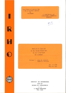 Proyecto de creación de una unidad productora de aceite de palma en Nicaragua. Volumen 1. Nota de síntesis. Aspectos técnicos.