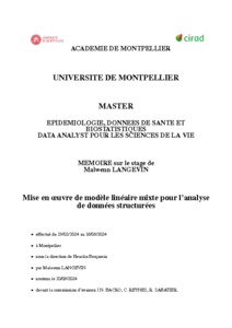 Langevin Malwenn. 2024. Montpellier : Université de Montpellier, 29 p. Mémoire de master 2 professionnel : Epidémiologie, données de santé et biostatistique - Data Analyst pour les sciences du vivant : Université de Montpellier