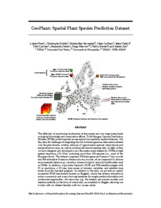 GeoPlant: Spatial plant species prediction dataset. Picek Lukáš, Botella Christophe, Servajean Maximilien, Leblanc César, Palard Rémi, Larcher Théo, Deneu Benjamin, Marcos Diego, Bonnet Pierre, Joly Alexis. 2024. In : Advances in Neural Information Processing Systems 37 (NeurIPS 2024). Globerson A. (ed.), Mackey L. (ed.), Belgrave D. (ed.), Fan A. (ed.), Paquet U. (ed.), Tomczak J. (ed.), Zhang C. (ed.). San Diego : NeurIPS Foundation, 24 p. ISBN 9798331314385 Conference on Neural Information Processing Systems (NeurIPS 2024). 38, Vancouver, Canada, 10 Novembre 2024/10 Décembre 2024.