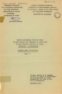 Détermination de la tolérance des races locales de porcs au gossypol du tourteau de coton pression produit au Tchad. Landais Etienne, Quéval Rémy, Landry C., Provost Alain. 1976. In : Rapport annuel 1975. N'Djamena : Laboratoire de Farcha