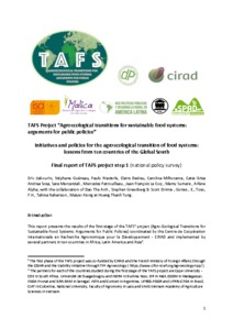 Initiatives and policies for the agroecological transition of food systems: Lessons from ten countries of the Global South. Final report of TAFS project step 1 (national policy survey). Sabourin Eric, Guéneau Stéphane, Niederle Paulo, Dedieu Claire, Milhorance Carolina, Grisa Catia, Sosa Andrea, Mercandalli Sara, Patrouilleau Mercedes, Le Coq Jean-François, Sumare Mamy, Alpha Arlène, The Anh Dao (collab.), Greenberg Stephen (collab.), Drimie Scott (collab.), Goites E. (collab.), Toso F.H. (collab.), Raharison Tahina (collab.), Xiong Maiyer (collab.), Tung Hoang Thanh (collab.). 2025. s.l. : s.n., 21 p.