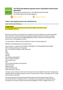 Quinoa biodiversity, agricultural practices, and nutritional profile variability under stress conditions. Bazile Didier. 2025. . ASARI, UM6P, Fondation Phosbouccraa, ICARDA. Laâyoune : UM6P-ASARI, 3 p. International Laayoune Forum on Biosaline and Arid Land Agriculture (LAFOBA3). 3, Laâyoune, Maroc, 20 Mai 2025/22 Mai 2025.