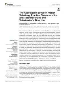 The association between French veterinary practice characteristics and their revenues and veterinarian's time use. Abdouttalib Ikram, Ndiaye Youba, Ferchiou Ahmed, Raboisson Didier, Lhermie Guillaume. 2021. Frontiers in Veterinary Science, 8, 10 p.